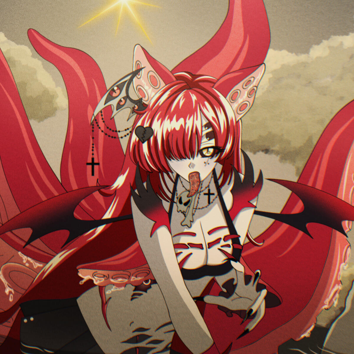 Solar’s first in-house talent, Flaire is a refined (and slightly unhinged) vampire countess with a deep fondness for tea, sheep, and elegance. Don’t let her fangs fool you; she’s got class, charisma, and just a touch of madness. You don't want to be late to one of her tea parties!